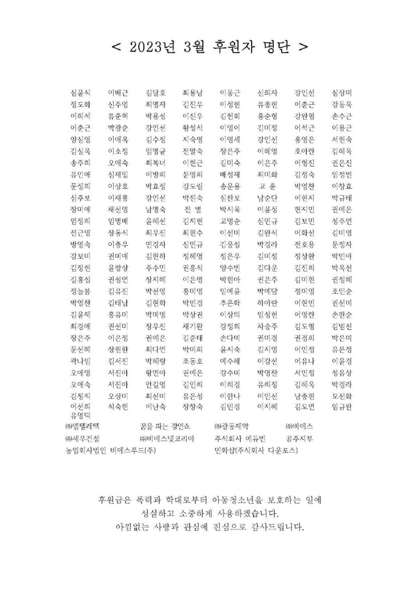 2023년 3월 후원자 명단