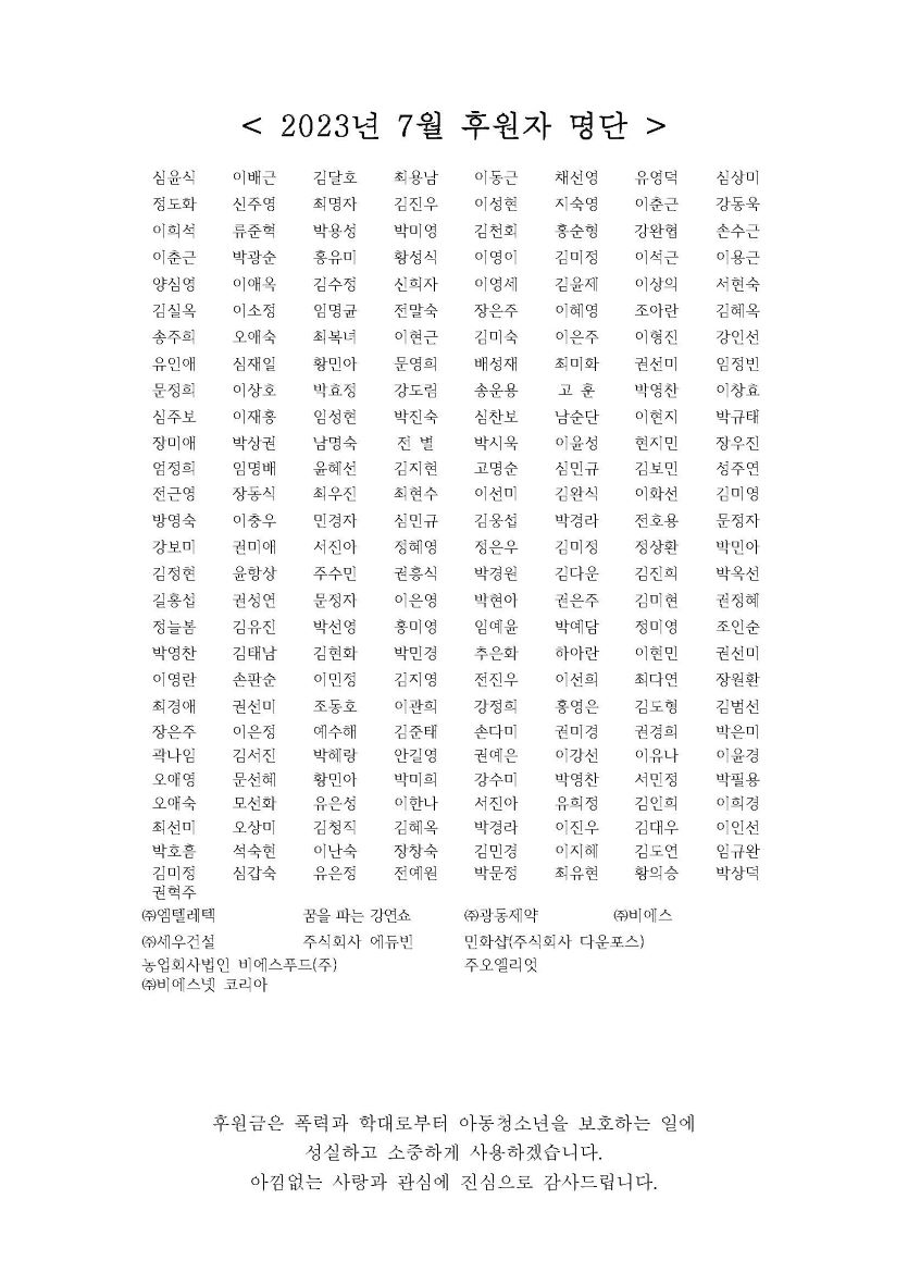 2023년 7월 후원자 명단